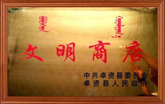 明明熏雞被卓資縣人民政府評為文明商店